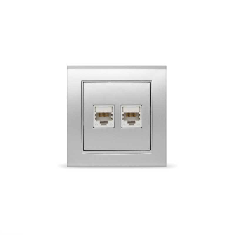 Розетка компьютерная двухместная UNIVersal серия Бриллиант, с/у, 1А, RJ45, серебро (еврослот)