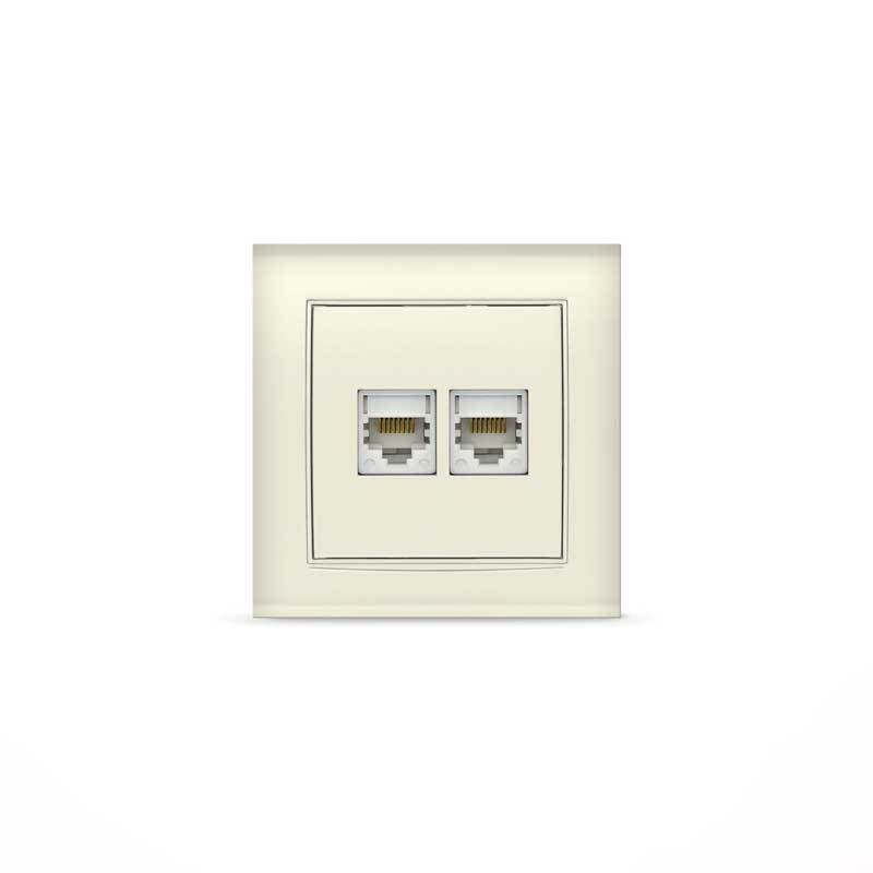 Розетка компьютерная двухместная UNIVersal серия Бриллиант, с/у, 1А, RJ45, слоновая кость (ivory), (еврослот)