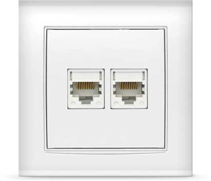 Розетка компьютерная лвухместная UNIVersal серия Бриллиант, с/у, 1А, RJ45, белая (еврослот)