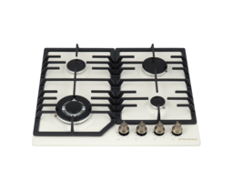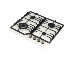 Панель выполнена из металла, покрытого термостойкой прочной эмалью бежевого цвета. В данной модели установлены высококачественные итальянские горелки «Sabaf» (4 конфорки). Три стандартные конфорки мощностью 1000 Вт, 1700 Вт, 1700 Вт и 1 свермощная WOK-конфорка с двойным пламенем мощностью 3800 Вт.