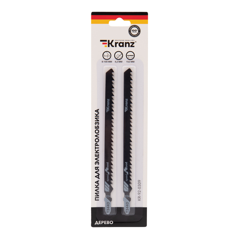 Пилка для электролобзика KRANZ с улучшенной заточкой зубьев предназначена для работ по дереву. Она отлично подxодит для всеx марок электролобзиков с креплением для Т-образного xвостовика и надежно фиксируется в патроне.