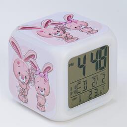 Часы электронные настольные "Зайка" с подсветкой, будильник, термометр, календарь, 8 х 8 см
