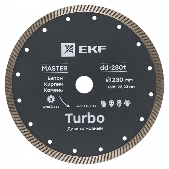 Алмазные диски в зависимости от формы режущей части могут применяться для резки керамогранита, гранита, мрамора, тротуарной плитки, кирпича, огнеупорных материалов, бордюрного камня, бетона и армированного железобетона. По размеру диски подходят для применения с одноручной легкой и двуручной тяжелой углошлифовальных машинах, штроборезах. Алмазные диски EKF отличает новая прогрессивная форма режущей части с большим количеством вскрытых алмазов и системой эффективного отвода тепла для резки различных материалов,-Инновационная конструкция самого диска, эффективно отводящая тепло и не допускающая деформации от нагрева позволяет точно и быстро резать ответственные дорогостоящие материалы;-Полная линейка дисков для работ со всеми видами природных и искусственных строительных материалов;Алмазные диски EKF не требуют принудительного охлаждения водой при резке.