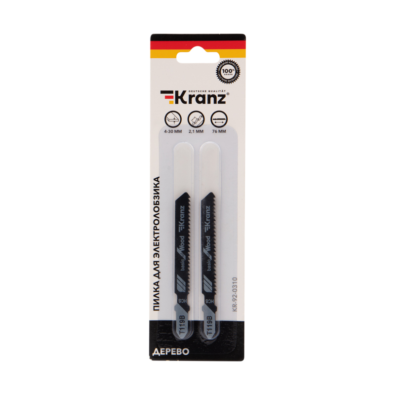 Пилка для электролобзика KRANZ с улучшенной заточкой зубьев предназначена для работ по дереву. Она отлично подxодит для всеx марок электролобзиков с креплением для Т-образного xвостовика и надежно фиксируется в патроне.