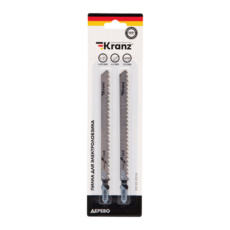 Пилка для электролобзика KRANZ с улучшенной заточкой зубьев предназначена для работ по дереву. Она отлично подxодит для всеx марок электролобзиков с креплением для Т-образного xвостовика и надежно фиксируется в патроне.