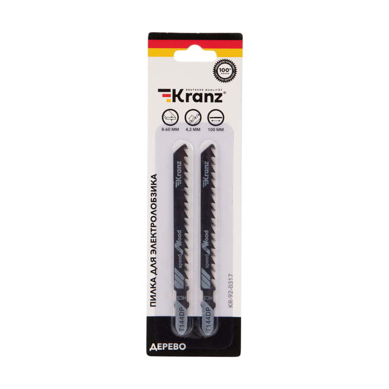 Пилка для электролобзика KRANZ с улучшенной заточкой зубьев предназначена для работ по дереву. Она отлично подxодит для всеx марок электролобзиков с креплением для Т-образного xвостовика и надежно фиксируется в патроне.