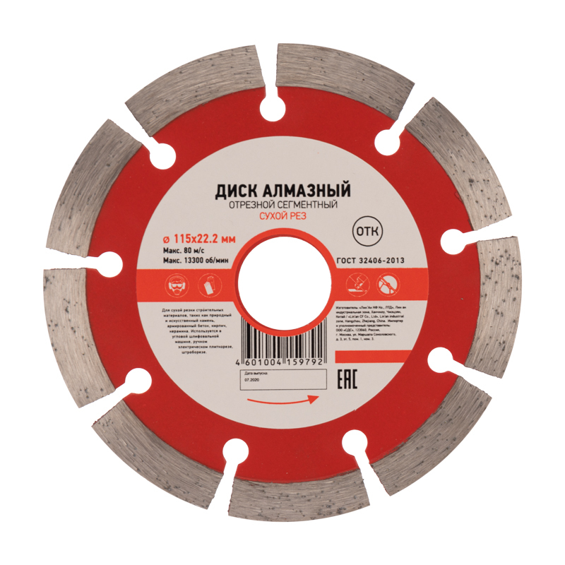 Внимание. Запрещается использовать диск для разрезания металлов. При установке диска руководствуйтесь стрелкой направления вращения диска. Используйте средства индивидуальной защиты. Не утилизировать с бытовыми отxодами.