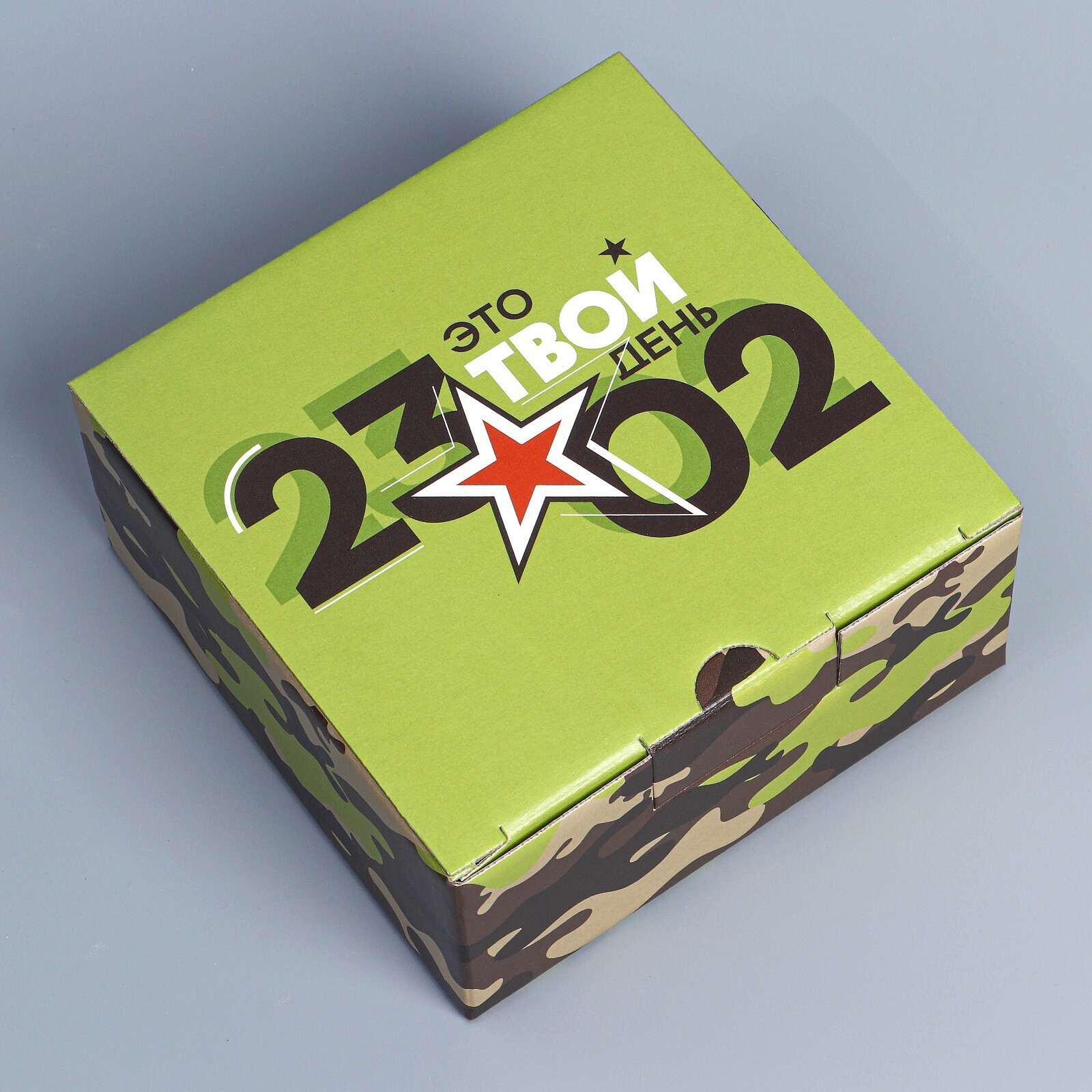 Коробка сборная «23.02», 15 х 15 х 7 см