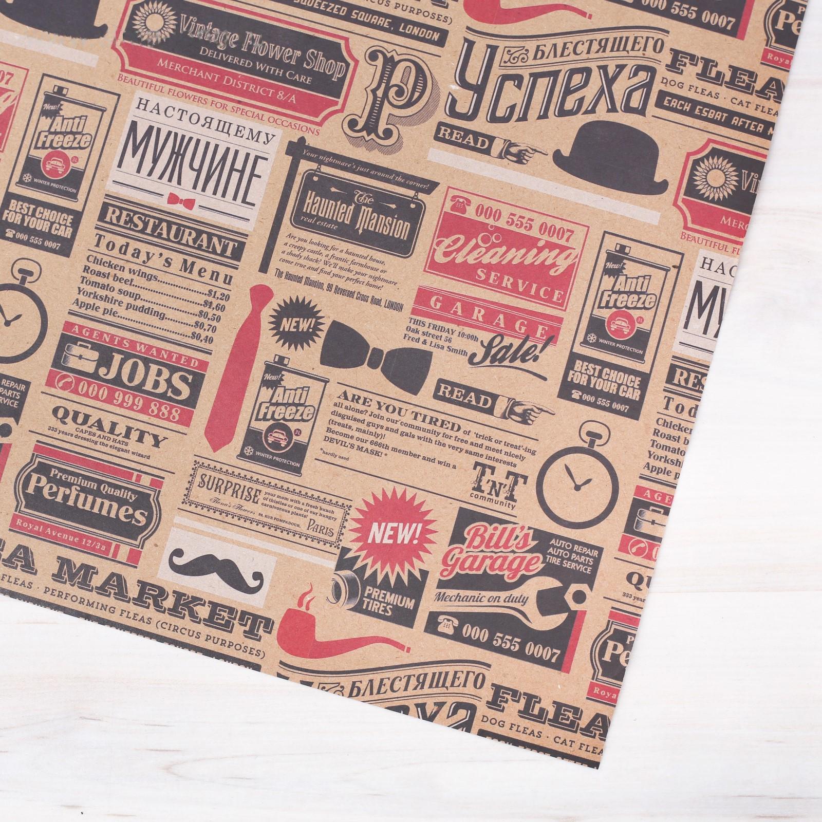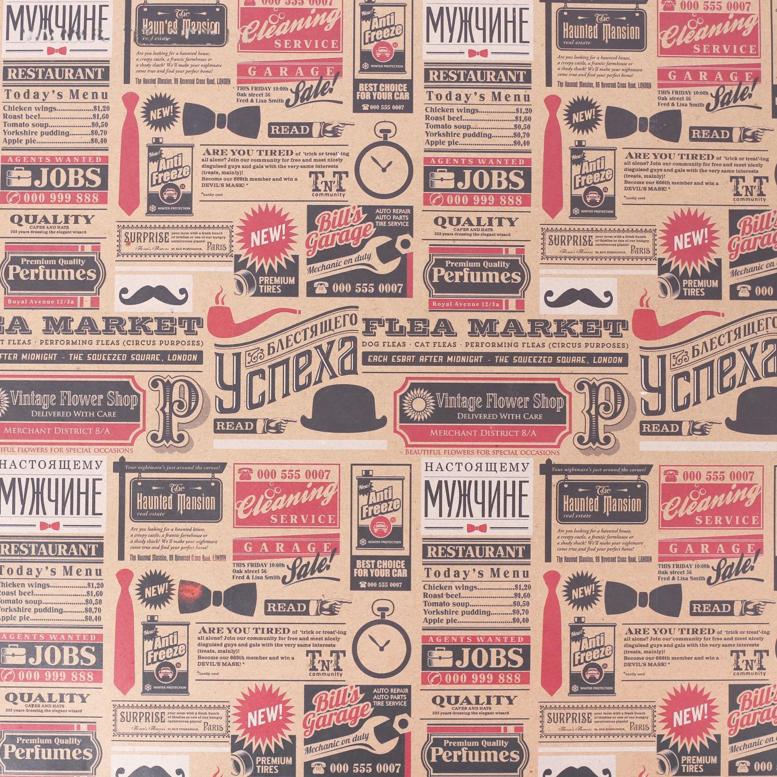 Бумага упаковочная крафтовая «Газетные вырезки», 50 × 70 см