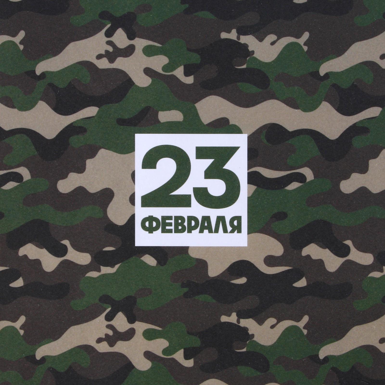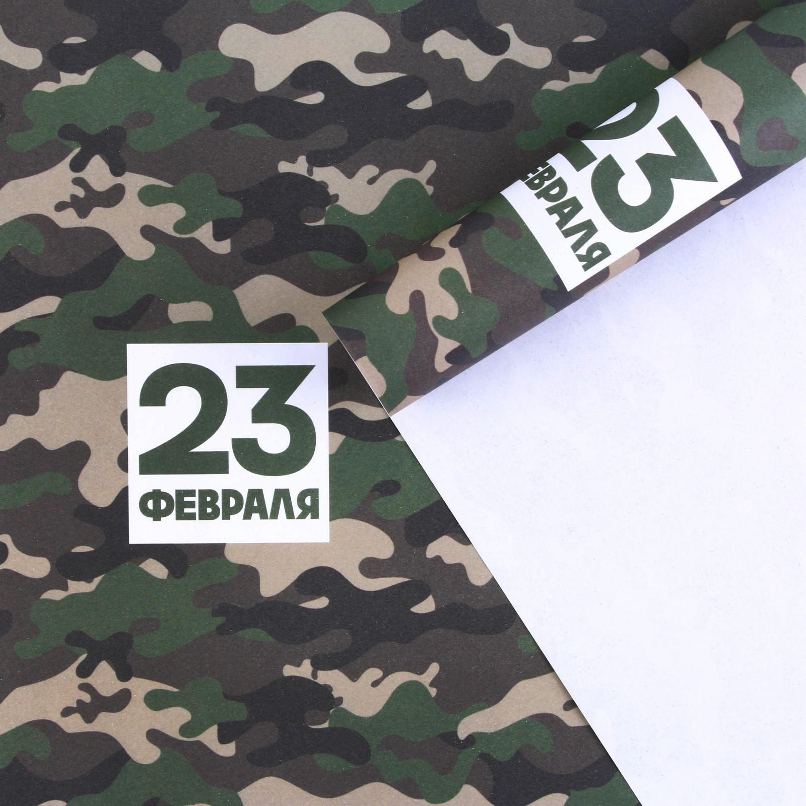Бумага крафтовая белая «23 февраля хаки», 50 x 70 см