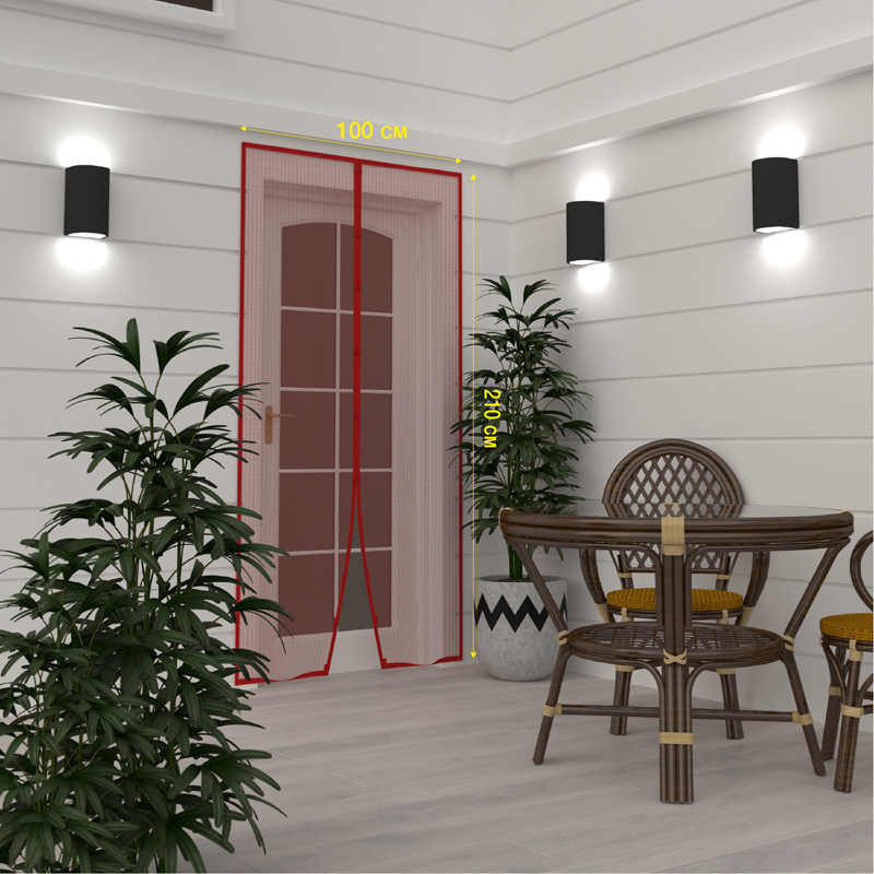Полиэфирные дверные занавески - 2 шт.Магнитная коробка на 9 пар12 пар липучки 12x6 см в петле и на крючке, липучка с обратной стороныРазмер: 210x100 см (занавес)Вес: 220 г