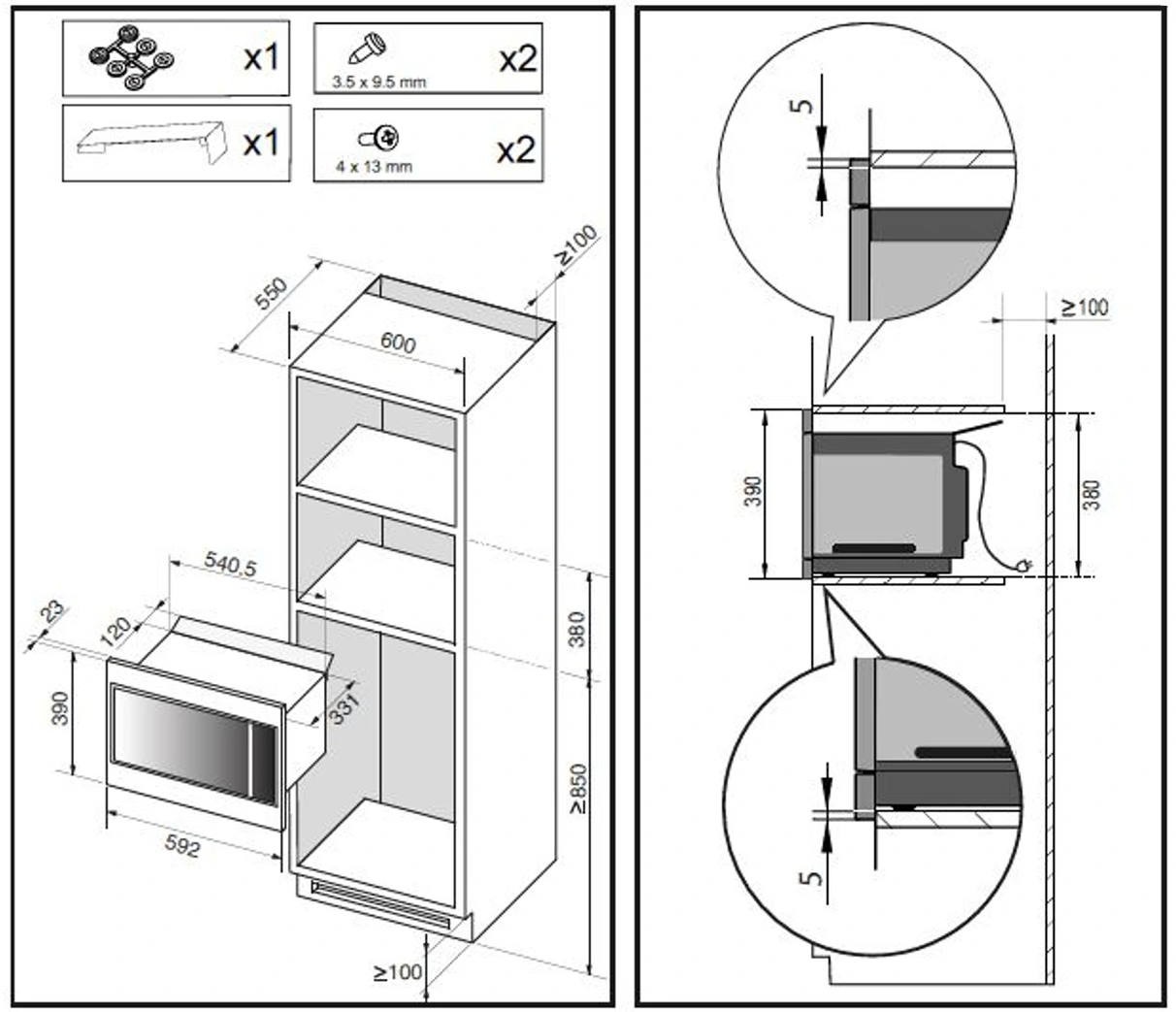 - Размеры для встраивания (ВхШхГ) 380x600x550 мм