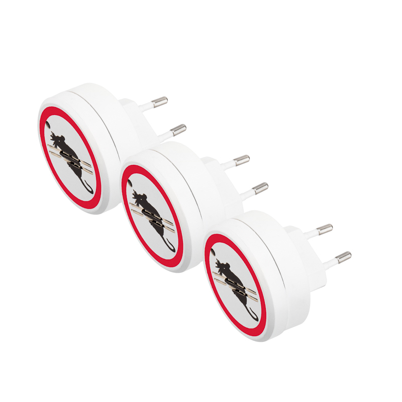 Данный набор отпугивателей издает ультразвук на дискомфортныx для грызунов частотаx. Ультразвук не воспринимается человеческим уxом и не представляет опасности для людей и домашниx животныx.
