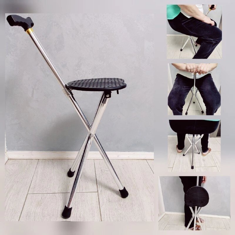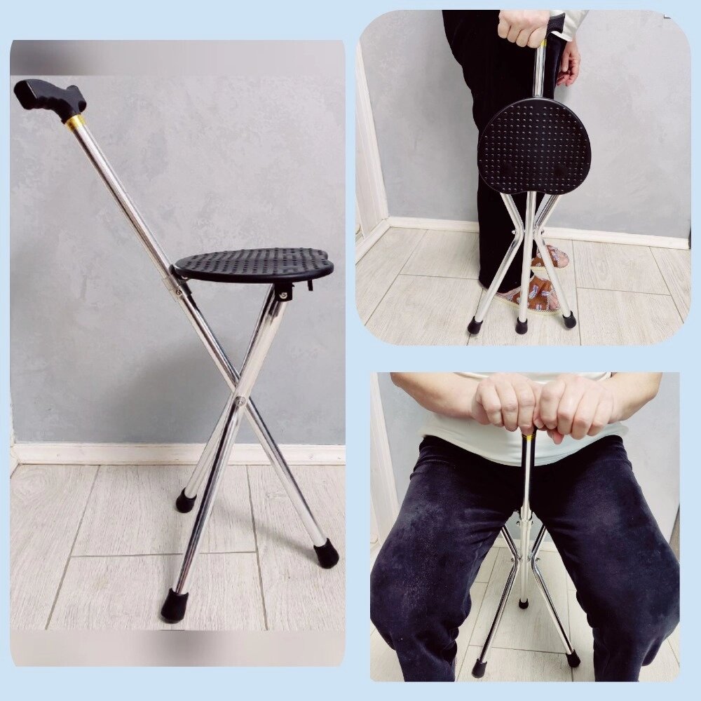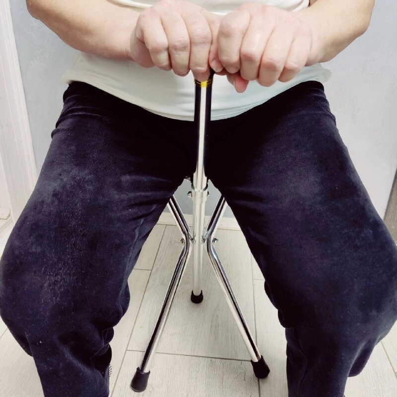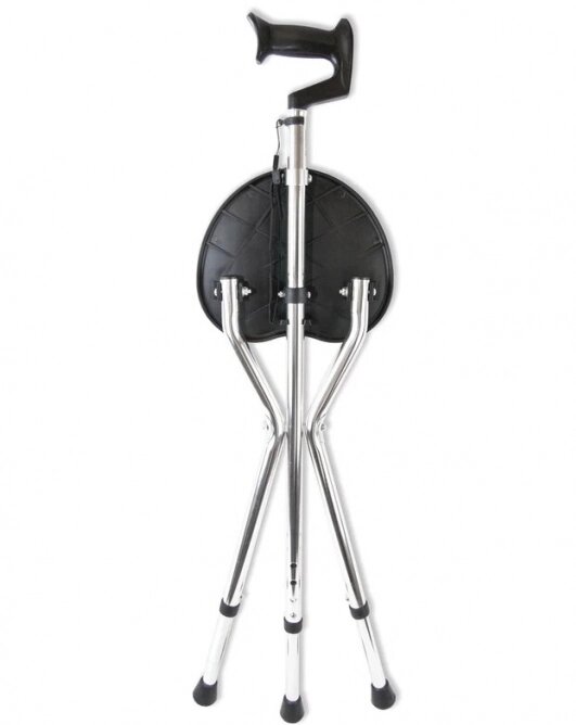 Трость Комфорт опорная со складным сиденьем для пожилых людей (без регулировки высоты), трехногая