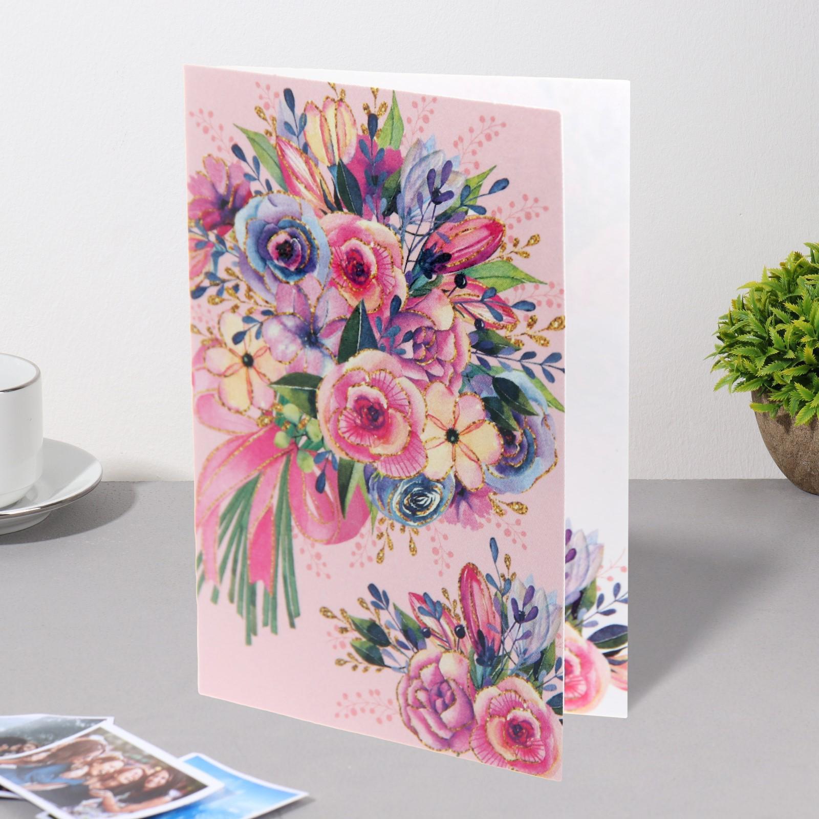 Открытка-шильдик "Универсальная" розовый фон 11,5 х 8,5 см