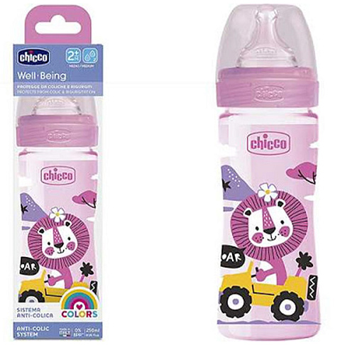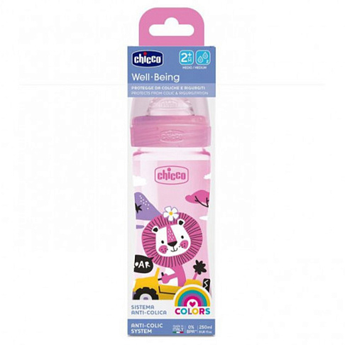 Бутылочка Well-Being Girl, 2 мес+, 250 мл., с силиконовой соской, средний поток 0+ CHICCO 250 мл арт.340728583 Италия
