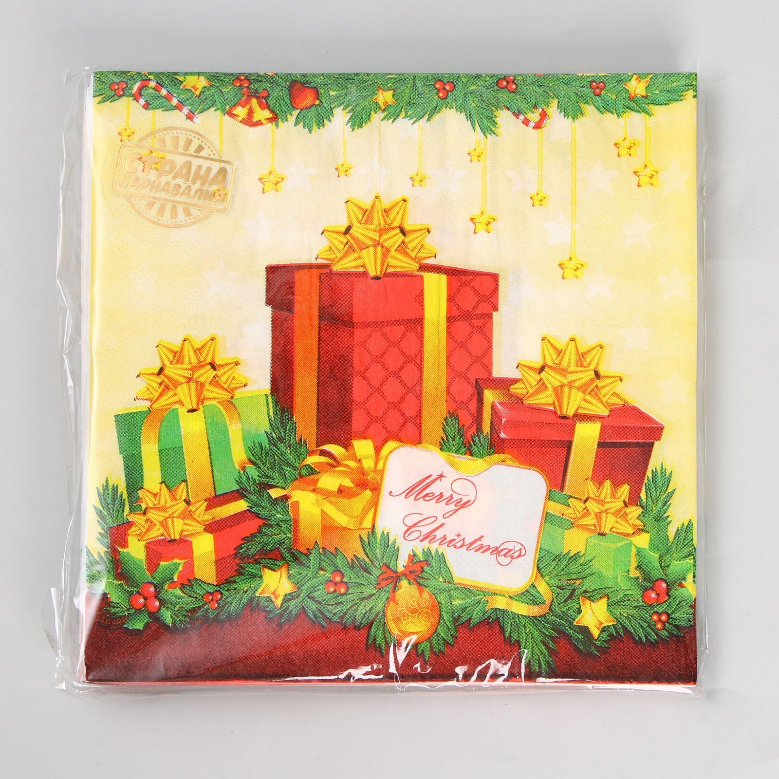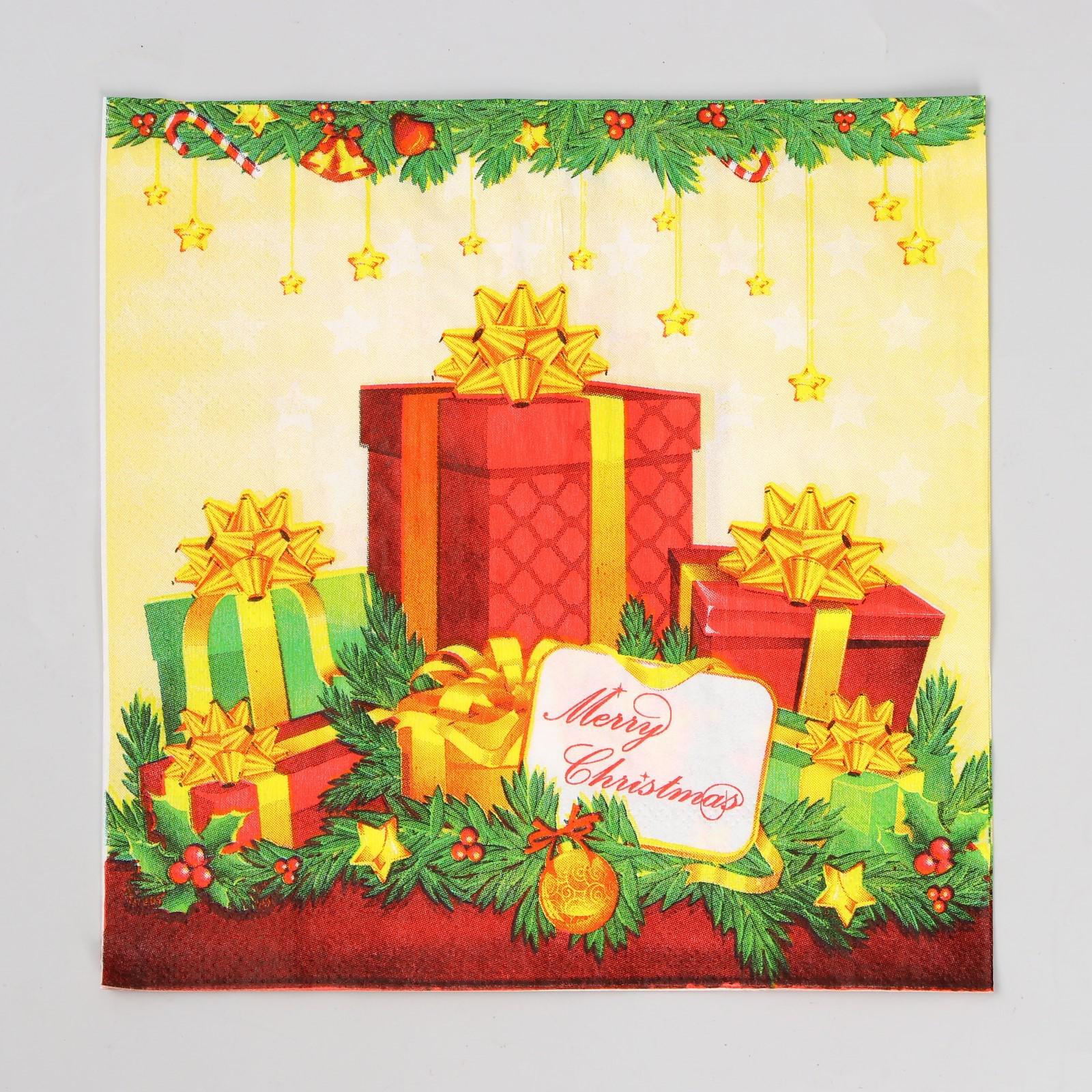 Салфетки бумажные «Новогодние подарки», набор, 20 шт., 33 × 33 см