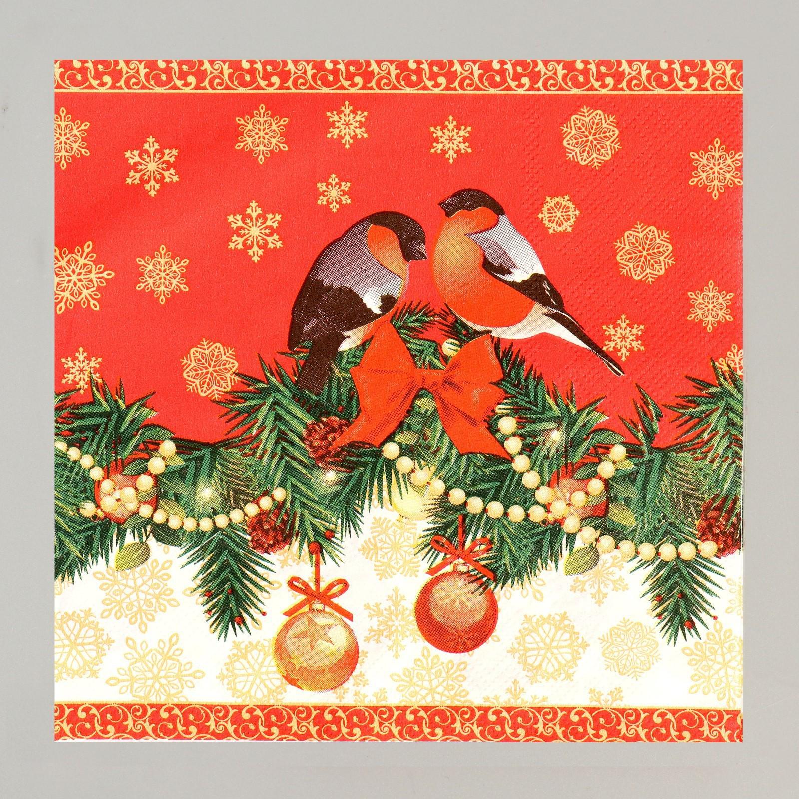 Салфетки бумажные «Снегири», 33 × 33 см, набор, 20 шт