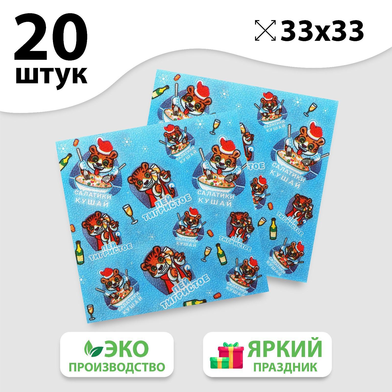 Салфетки бумажные «Пей тигристое», 33 см, 20 шт.