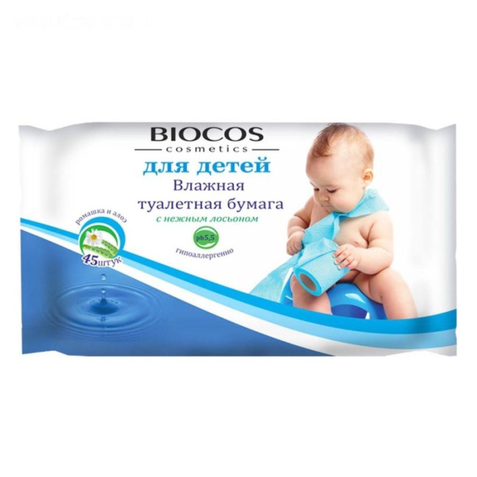 Влажная туалетная бумага BioCos, детская, 45 шт.