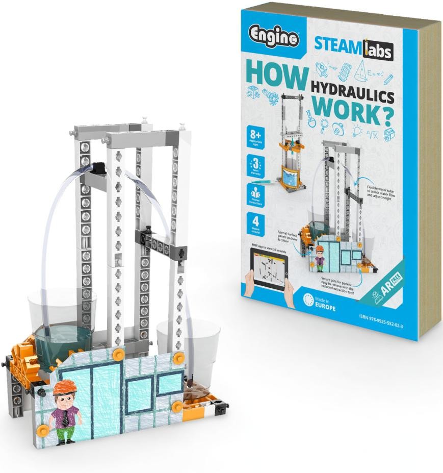 “Ігровий STEAM-набір «Як працює гідравліка?» від європейського бренду Engino. Набір чудово поєднує класичне конструювання з ігровим сюжетом, що сприяє розвитку інженерних здібностей у дитини. Занурьтеся у світ гідродинаміки, збираючи та оснащуючи власну гідравлічну установку! А закінчивши свої експерименти, юні винахідники зможуть за допомогою кольорових олівців чи фломастерів розфарбувати свої моделі! Крім того, до набору входить кольоровий буклет із: