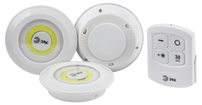 ЭРА Арфа SB-511 АРФА - светодиодный беспроводной фонарь с пультом дистанционного управления, он позволяет включать подсветку и изменять яркость на расстоянии, а также устанавливать таймер работы освещения 30 минут. Состоит из 3 компактных самоклеящихся пушлайтов, которые можно включать и пультом, и нажатием на кнопку в центре корпуса. Монтируются на поверхность без сверления - просто отклейте защитный слой и приклейте фонари. В комплекте настенный держатель для пульта на липучке. Круглая форма, небольшие размеры, малый вес и базовый белый цвет делают ЭРА SB-511 универсальной бытовой подсветкой, которую стоит купить в квартиру, загородный дом, на дачу. Удобно подсвечивать затемненные части комнат, кладовки, шкафы, полки, столешницы под кухонными шкафами. Для работы нужны 12 мизинчиковых батареек: 9 для пушлайтов и 3 для пульта (в комплект не входят). Комплекта алкалиновых батареек хватит на 15 часов непрерывного свечения. В пушлайтах установлены сверхъяркие светодиоды последнего поколения.