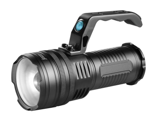 Алюминиевый фонарь-прожектор с Li-Ion аккумуляторами и функцией ZOOM. Фокусирующие линзы. 5Вт светодиод 350лм. Три режима яркости (100%, 50%, мигающий). Дальность светового луча 300 м. В комплекте 3 акк-ра 18650, адаптер для зарядки от сети 220В.