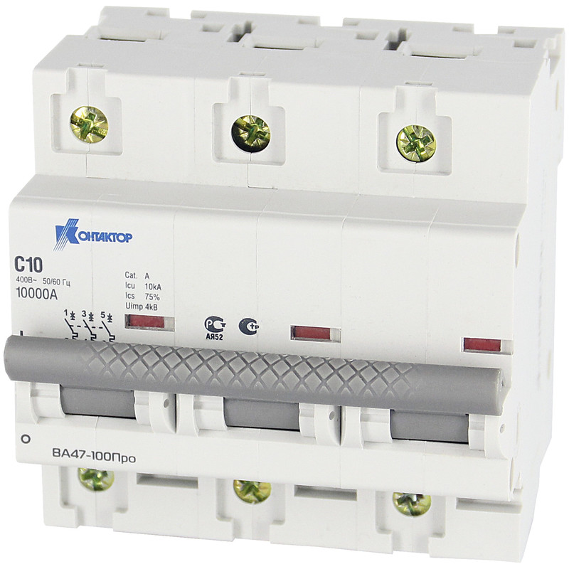Автоматический выключатель ВА47-100, 3P, 16A, Icu-10kA, х-ка С