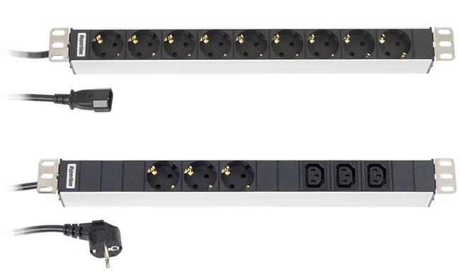 Блоки силовых (электрических) розеток Hyperline производятся в трех вариантах типоразмеров – для горизонтального монтажа по стандартам 10" и 19" (254 и 482,6 мм); для вертикального/произвольного монтажа (длина более 482,6 мм). Данные размеры оптимальны для распределения электропитания в телекоммуникационных и серверных шкафах и стойках, а также прекрасно подходят для подключения бытовой электротехники к сети переменного тока напряжением 250 В и частотой 50 Гц. Общий ток нагрузки до 16 А, при условии нормальной эксплуатации. Блоки розеток для трехфазных сетей рассчитаны на ток не менее 32 А.