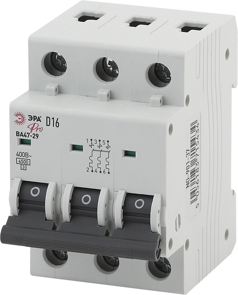 Автоматический выключатель - контактный коммутационный аппарат, способный включать токи, проводить их и отключать при нормальных условиях в цепи, а также включать, проводить в течение нормированного (заданного) времени и автоматически отключать токи при нормированных ненормальных условиях в цепи, таких, как токи короткого замыкания. Автоматические выключатели бывают одно-, двух-, трёх- или четырёхполюсными и имеют следующие конструктивные узлы: главную контактную систему, дугогасительную систему, привод расцепляющего устройства, расцепители. Автоматические выключатели ВА47-29 предназначены для защиты распределительных и групповых цепей, имеющих различную нагрузку: электроприборы, освещение выключатели с характеристикой В; двигатели с небольшими пусковыми токами (компрессор, вентилятор) выключатели с характеристикой C; двигатели с большими пусковыми токами (подъемные механизмы, насосы) выключатели с характеристикой D.