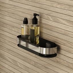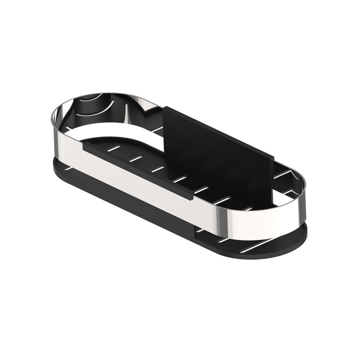 Овальная полка для ванной комнаты размером 300х128 мм вместит все необходимое для комфортного принятия душа. Внутри полки размещен гигиеничный короб – съемная вставка из прочного ABS-пластика в цвет внешнего корпуса, которая легко вытаскивается и моется, не ржавеет и не деформируется, не впитывает запахи. Изделие выполнено в трендовом черном цвете и станет ярким акцентом в любом интерьере. • Долговечное основание полки IDDIS® выполнено из антикоррозийной полированной нержавеющей стали, благодаря чему она прослужит дольше во влажном помещении ванной комнаты. Черное покрытие аксессуара выполнено надежным методом электроплейтинга. • Хромированное покрытие полки IDDIS® устойчиво к появлению царапин, потускнению и появлению пятен