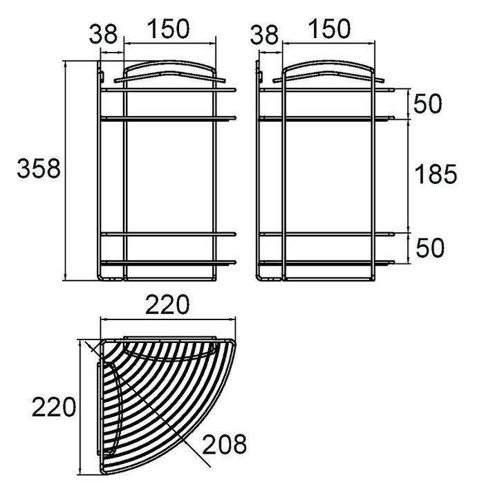 Полка выполнена из стали со стойким никель-хромовым покрытием, которое придает изделию исключительную коррозийную стойкость и позволяет сохранить его зеркальный глянцевый блеск в течение всего срока службы. Удобная и прочная конструкция аксессуаров позволяет с комфортом разместить все необходимое.