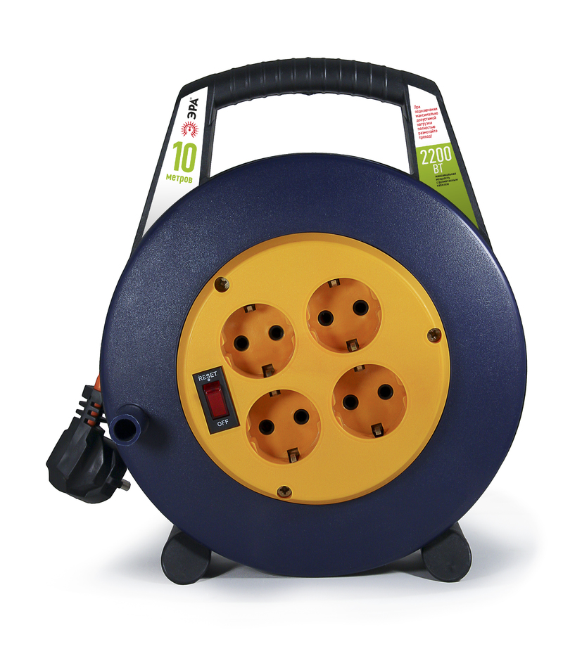 Силовой удлинитель ЭРА BPx-4e-3x1-10m в закрытом корпусе с заземлением, с выключателем, 4 розетки, 10м, ПВС 3x1мм2, 10А позволяет легко подключить удаленное на расстоянии от стационарной розетки электрооборудование суммарной мощностью до 2,2КВт. Закрытый корпус обеспечивает удобное и безопасное использование, а также хранение удлинителя. Удобная ручка позволяет легко передвигать удлинитель и устанавливать его в нужном для подключения месте.