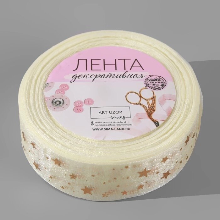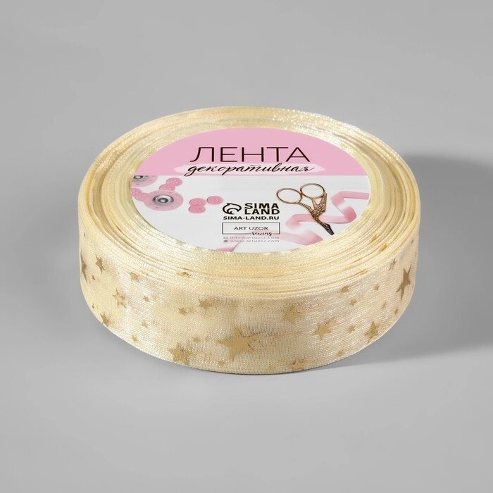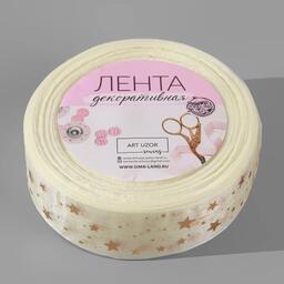 Лента капроновая "Звёзды" с тиснением, 25 мм, 23 1 м, цвет бежевый