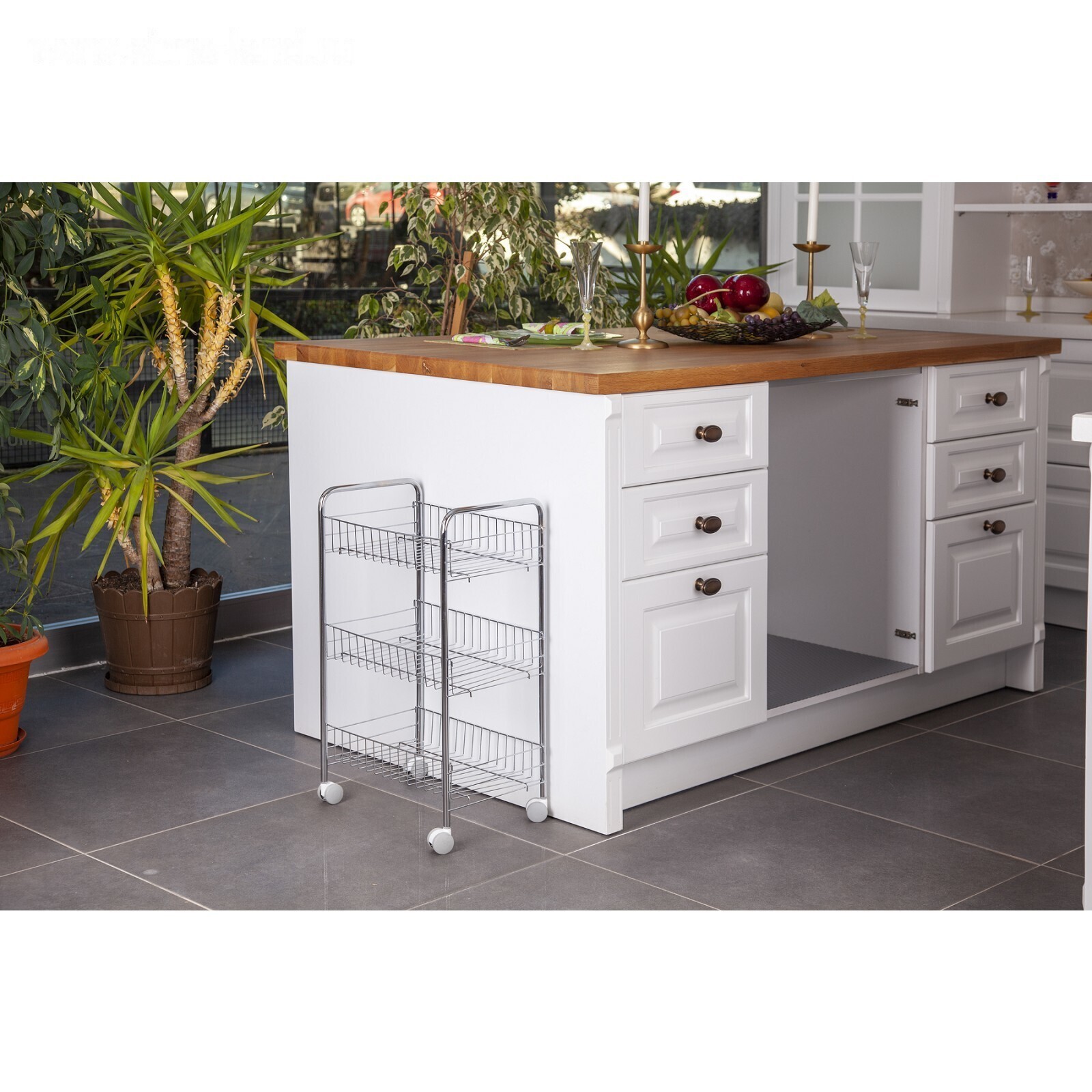 Подставка на колёсных опорах, прямоугольная, 3 яруса, цвет хром, MG003