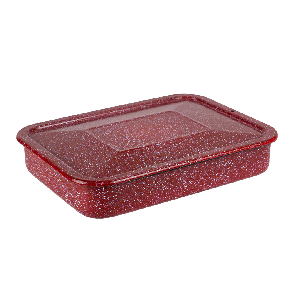 Лоток 2,5л эмалированный с крышкой Лысьвенские эмали Рябчик вишнёвый С-2511Км/РвшРб