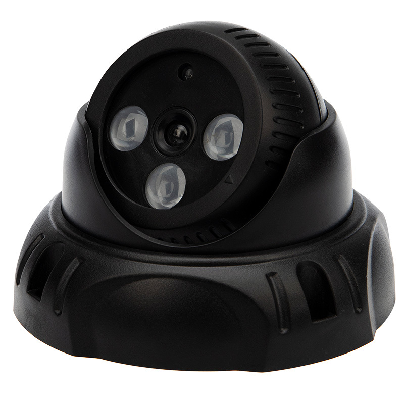 Муляж внутренней купольной камеры видеонаблюдения черного цвета с мигающим красным светодиодом неотличим от обычной камеры.