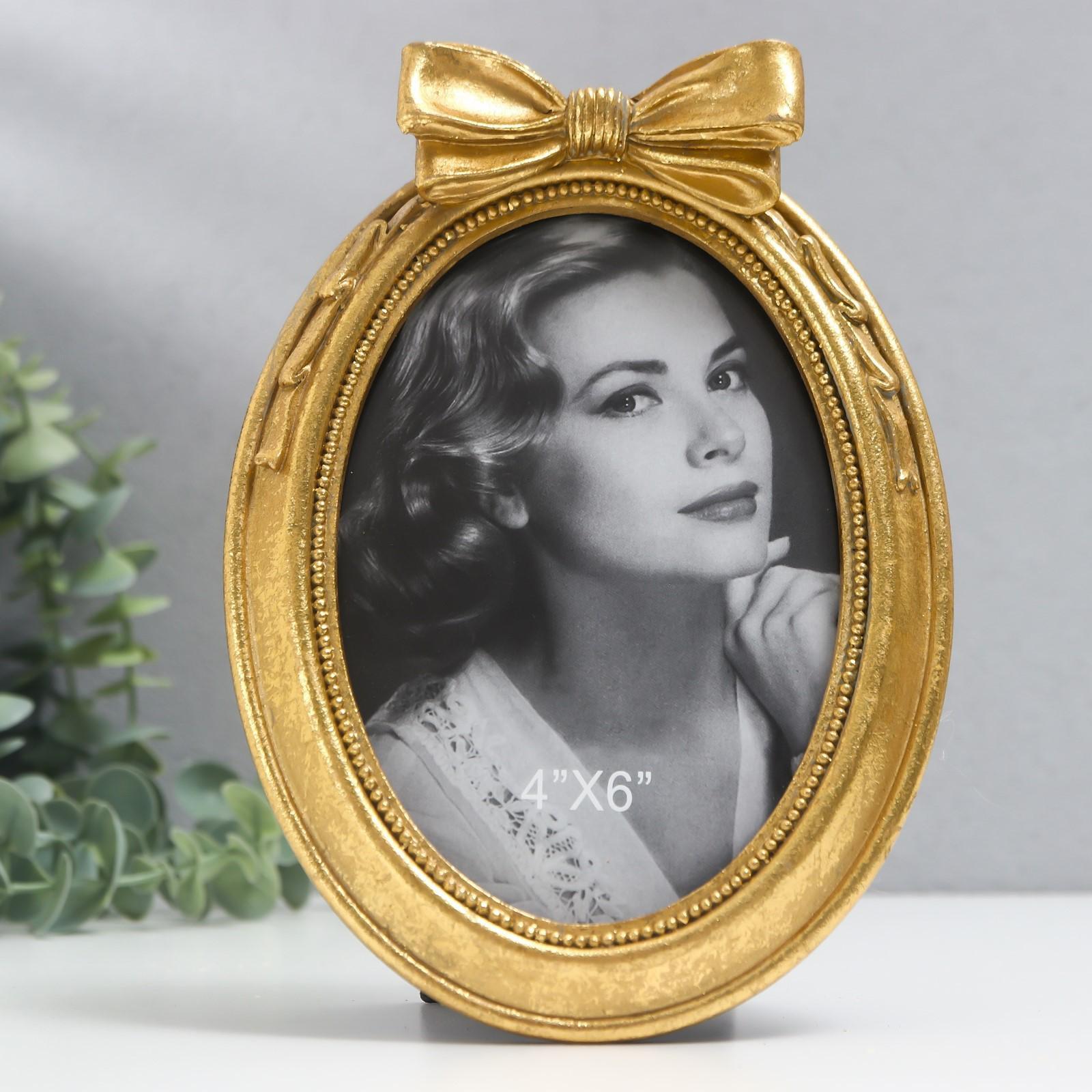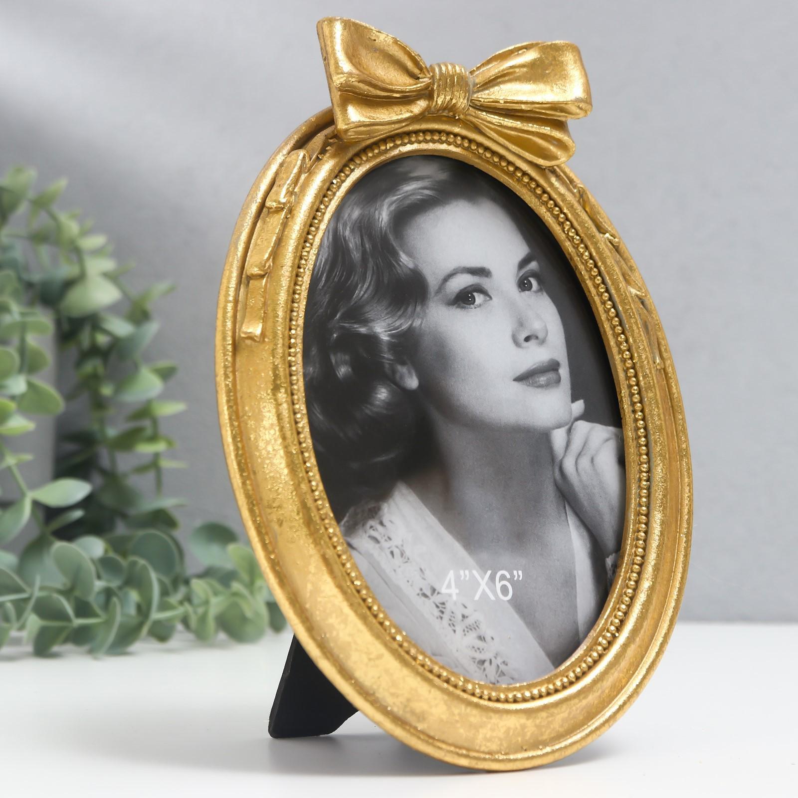 Фоторамка полистоун 10х14 см "Бантик" золотистая 13х18,8 см