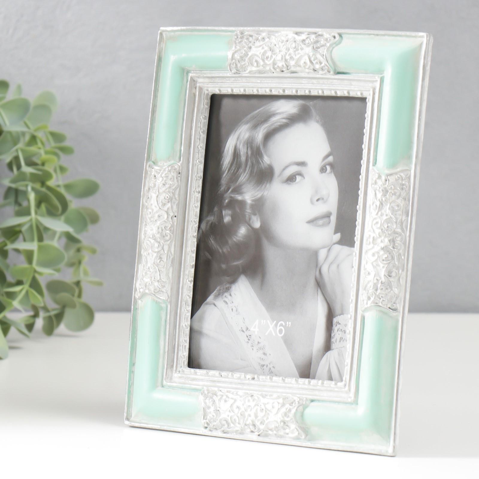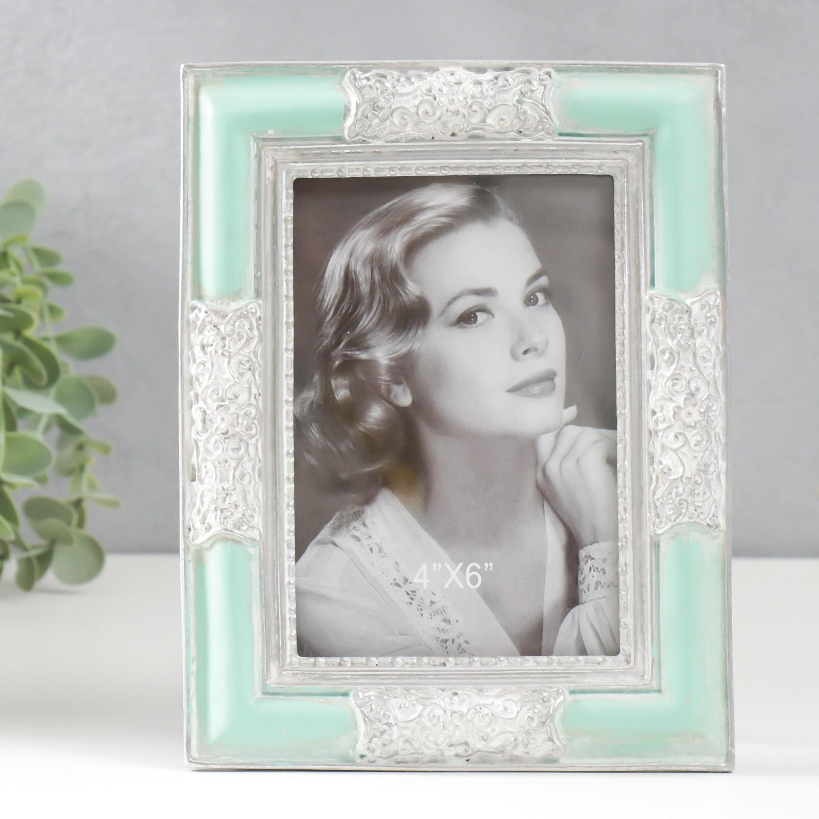 Фоторамка полистоун 10х15 см "Витиеватый узор" голубая 21х16 см