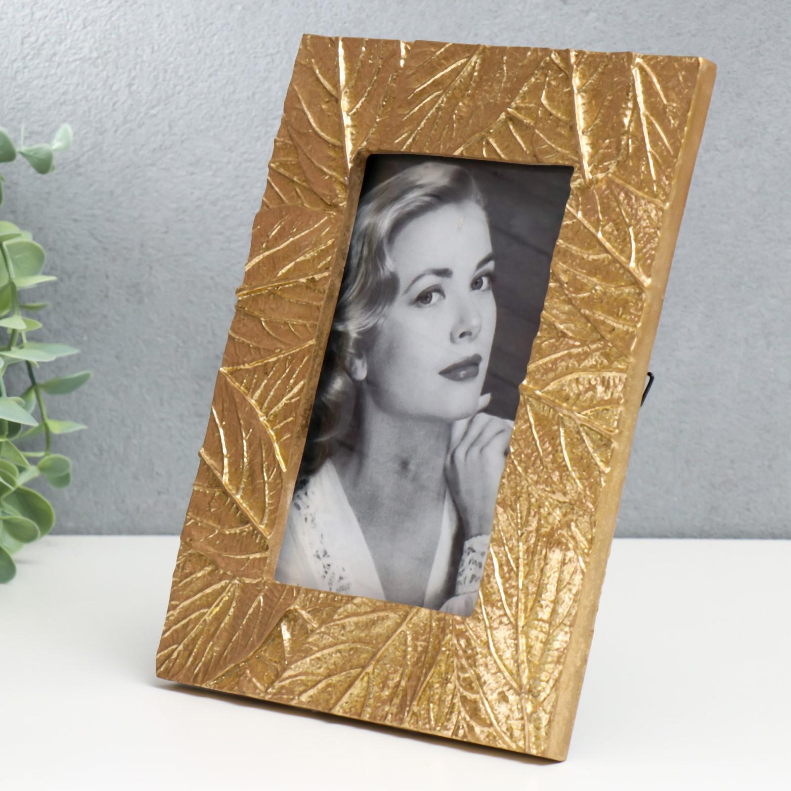 Фоторамка полистоун 10х15 см "Скелетированные листья" золото 21х16,5 см