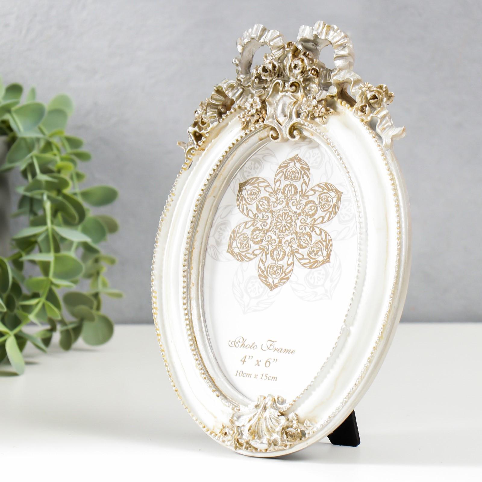Фоторамка полистоун 10х15 см "Бант и медальон" белая с золотом 21х14 см