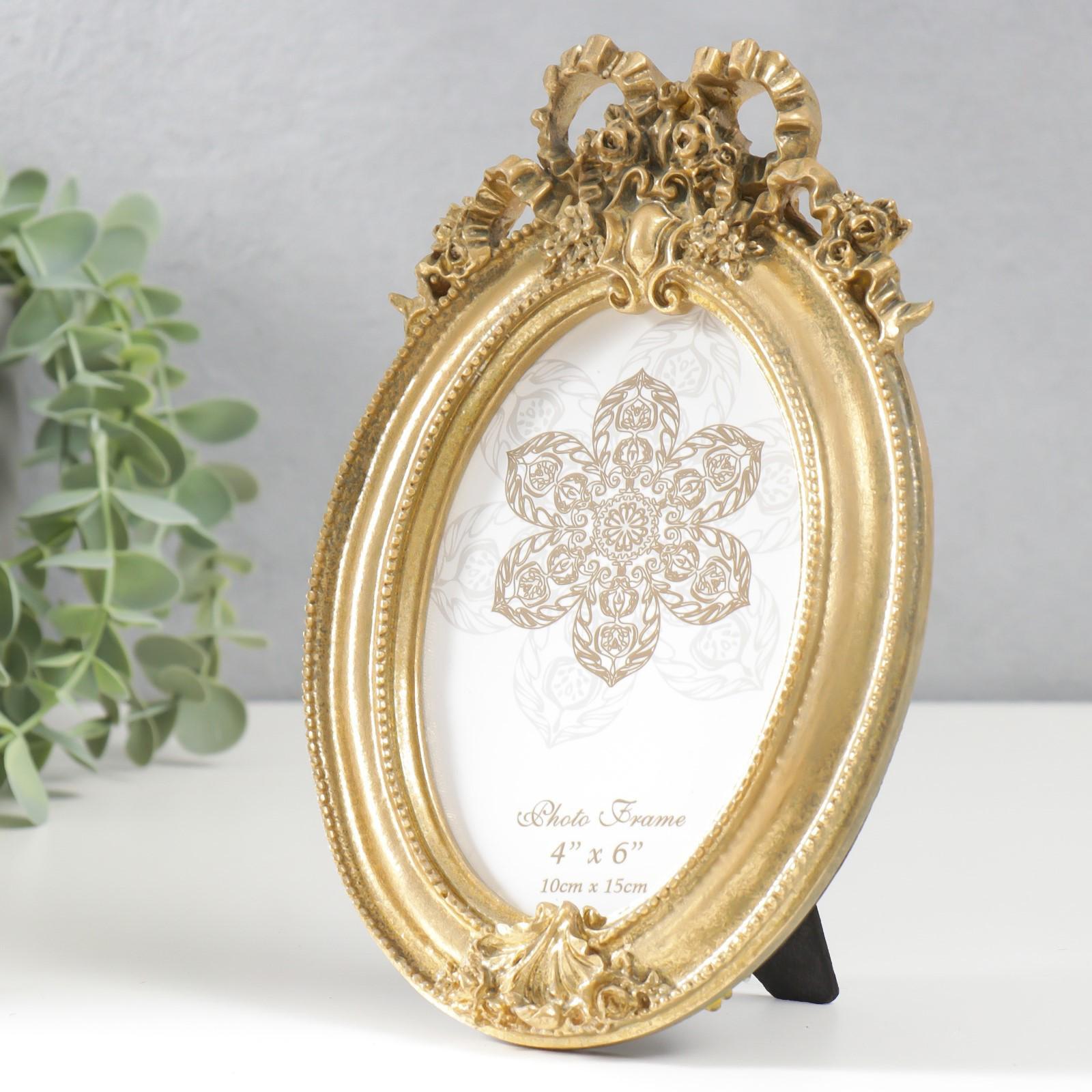 Фоторамка полистоун 10х15 см "Бант и медальон" состаренное золото 21х14 см