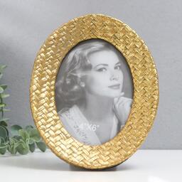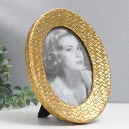 Фоторамка полистоун 10х15 см "Ромбовидное плетение" золотистая 14,5х19 см