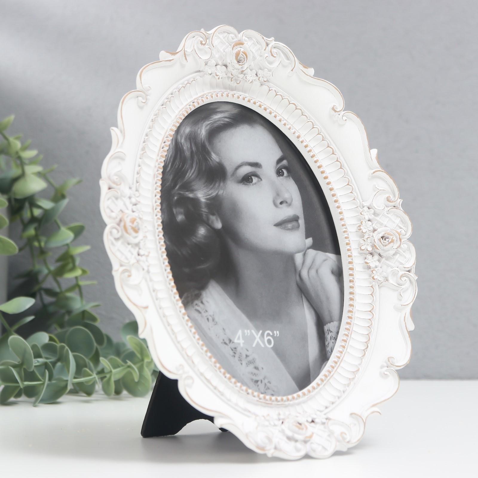 Фоторамка полистоун 10х14 см "Цветочные узоры" белая 15,5х19,5 см