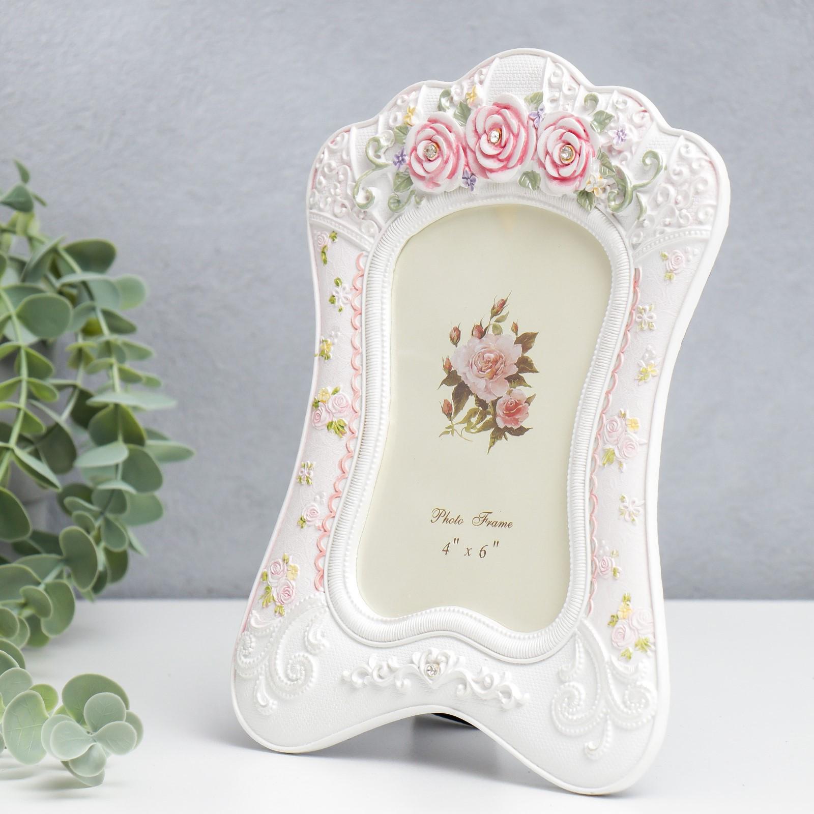 Фоторамка полистоун 10х15 см "Розы. Кружевная вышивка" стразы 23х16,5 см