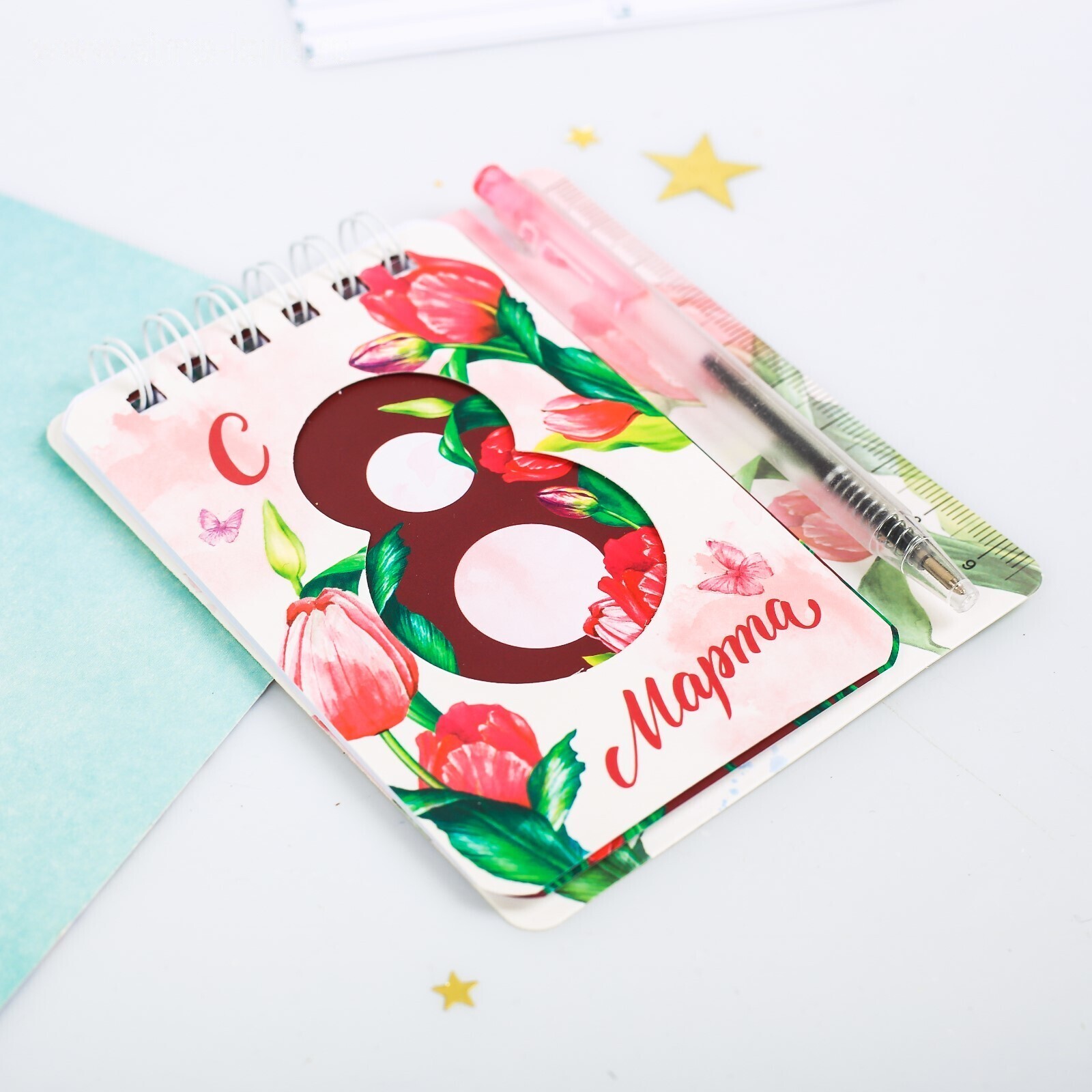 Набор «С 8 Марта» 9 х 10,4 см: блокнот и мини-ручка