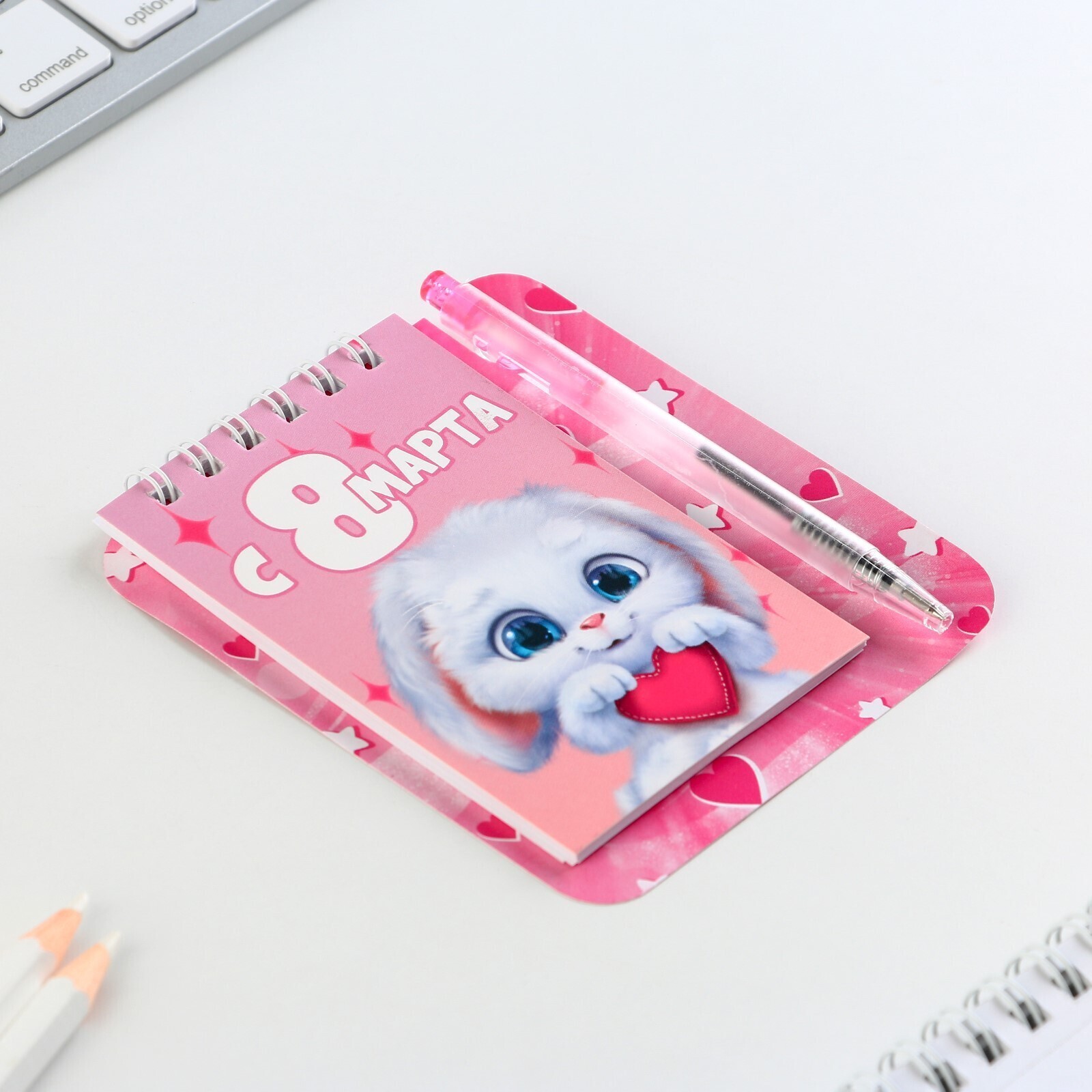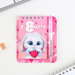 Блокнот и мини ручка "С 8 Марта. Зайка"