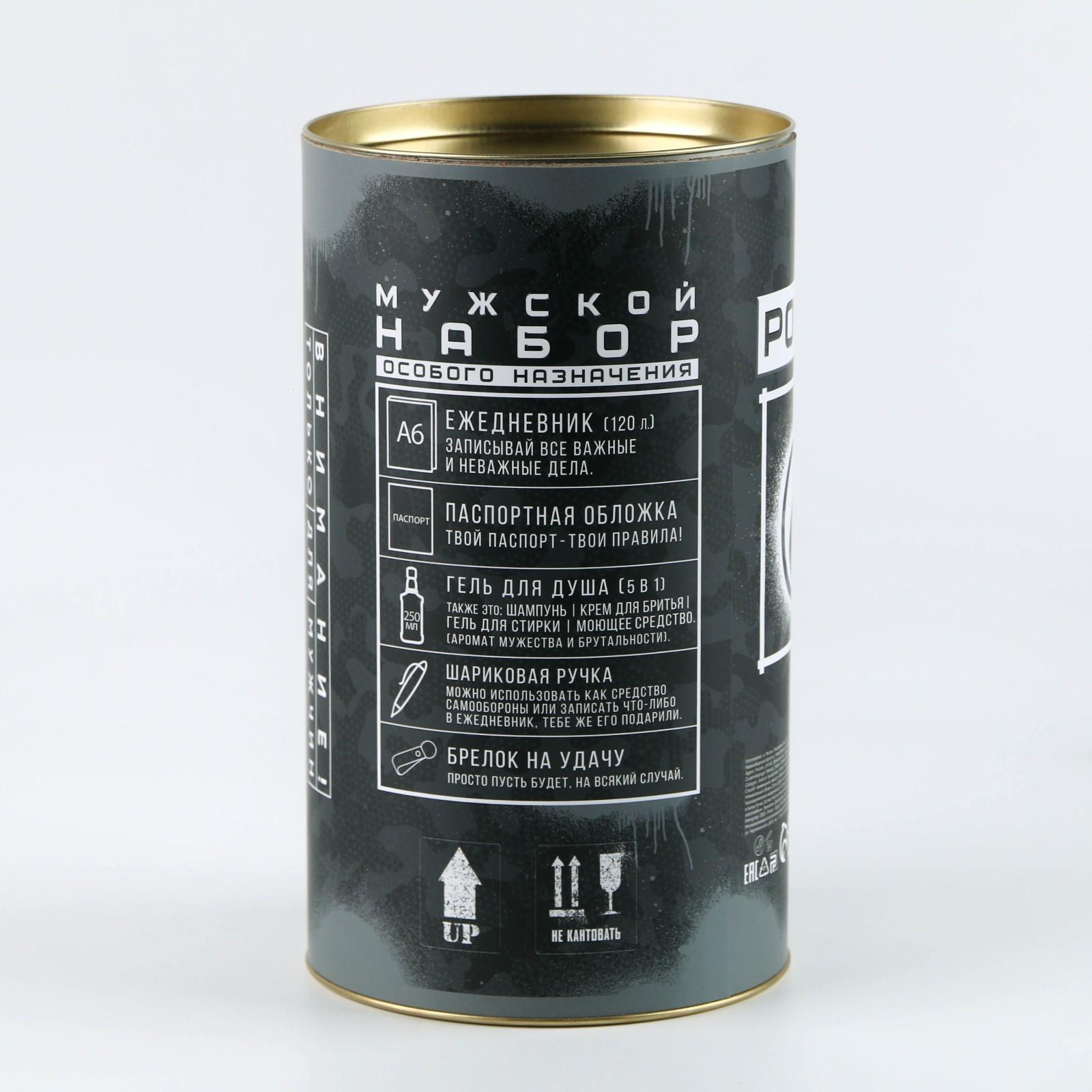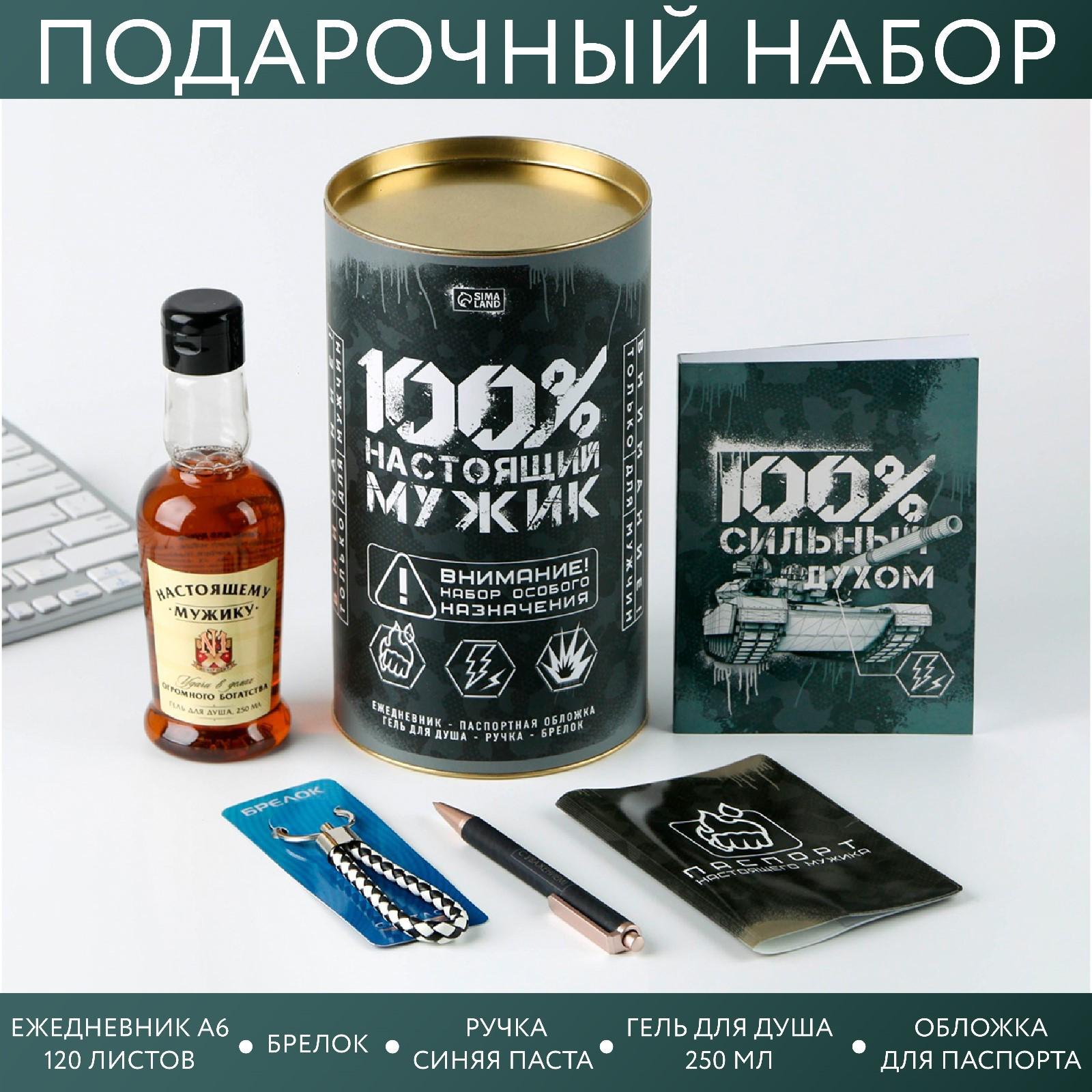 Подарочный набор в тубусе «100% мужик»: ежедневник, брелок, ручка, паспортная обложка, гель для душа