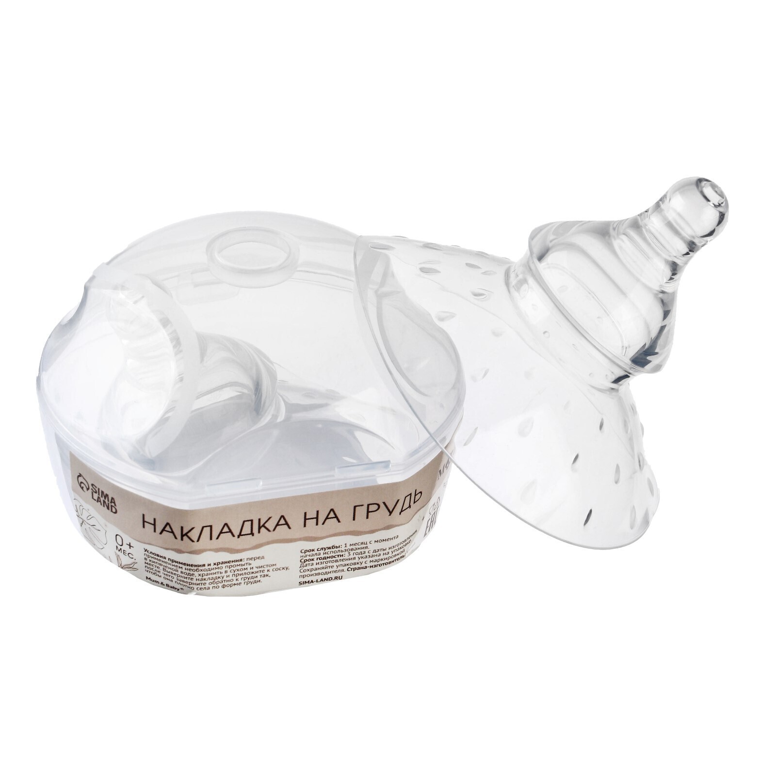 Накладка для кормления на грудь, в контейнере, силиконовая