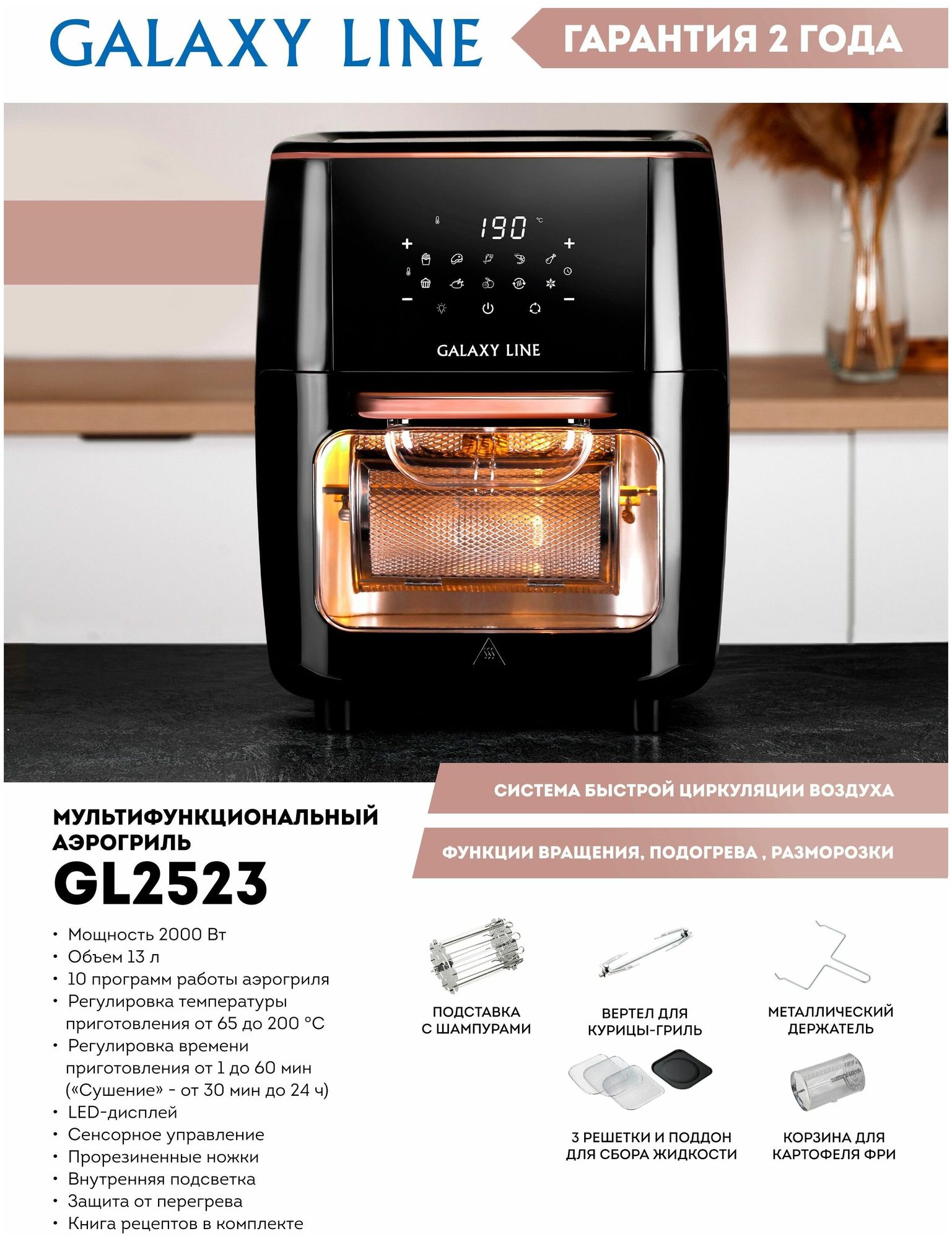 Описание товара Аэрогриль Galaxy Line GL 2523 2000Вт черный